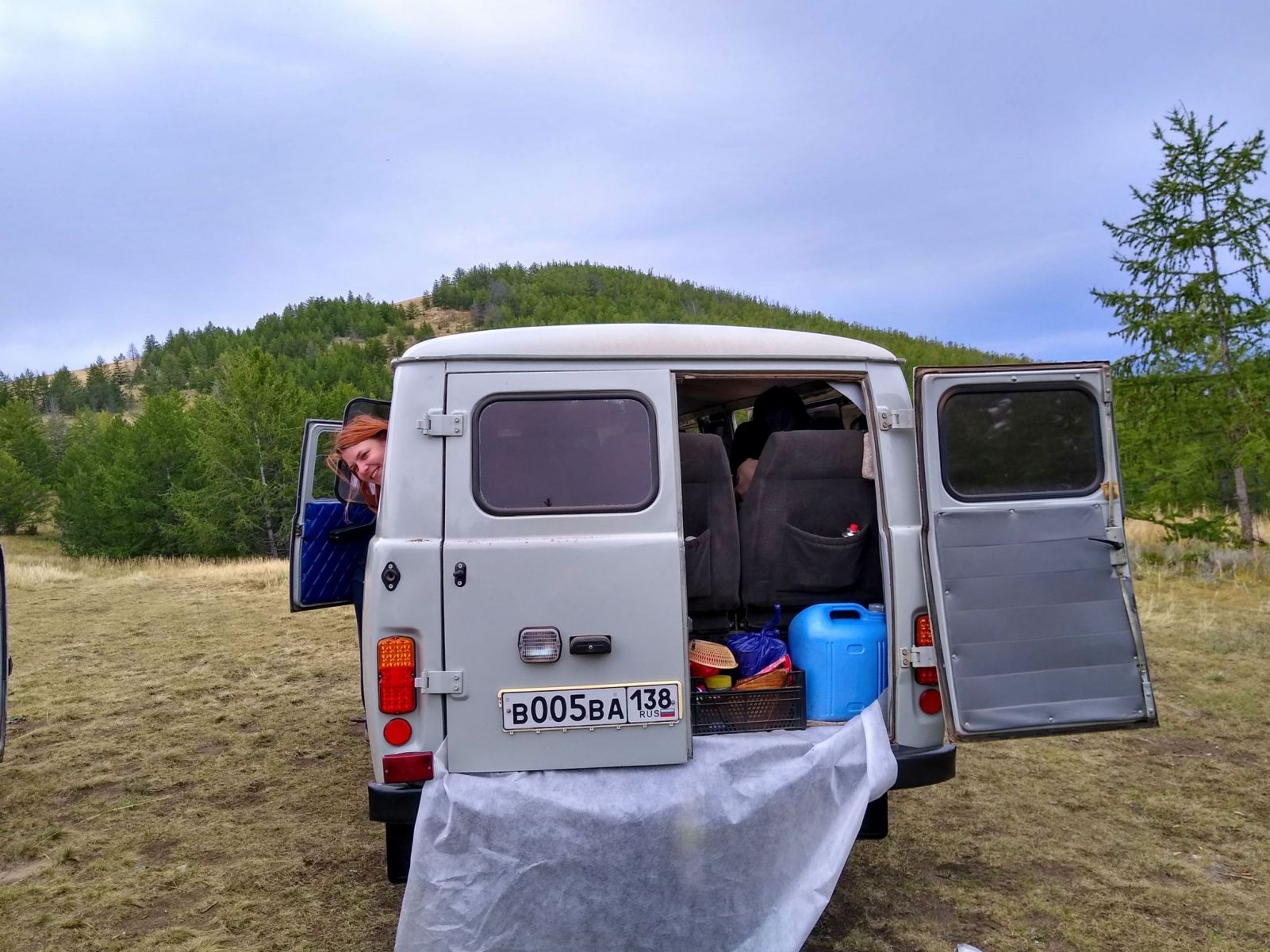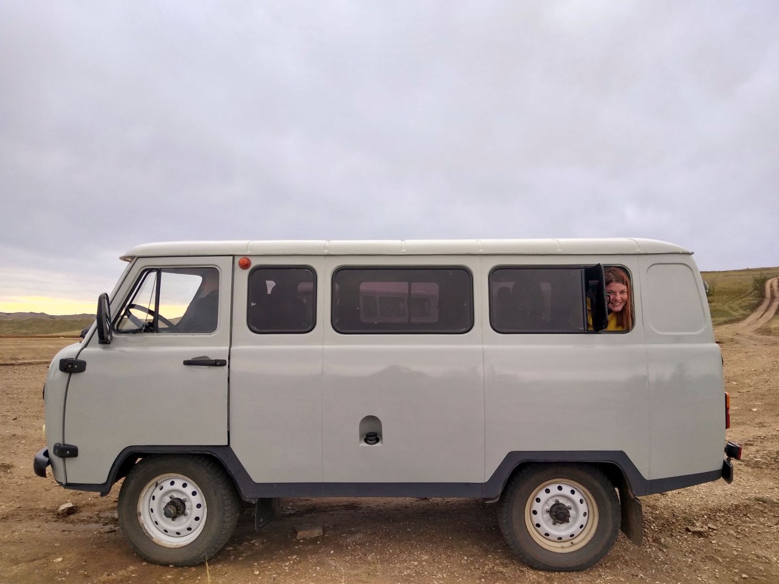 Die Busse nach Olchon sind sehr klein und es gibt natürlich kein WC, bei längeren Trips gibt es einen WC-Stop in der Mitte und man kann sich auch in der Kantine verpflegen. Als der Bus anhielt, musste ich relativ dringend auf die Toilette. Als ich ausgestiegen bin, realisierte ich, dass ich meine Jacke brauche und ging zurück in den Bus um diese zu holen. Leider hat mich der Busfahrer nicht gesehen und mich in den Bus eingeschlossen. John versuchte den Busfahrer zu finden, doch erfolglos und ich war die ganzen 30 Minuten im Bus eingeschlossen und musste dringend auf die Toilette. Es waren harte 30 Minuten, aber ich konnte durchhalten und nach der Pause noch schnell aufs WC.